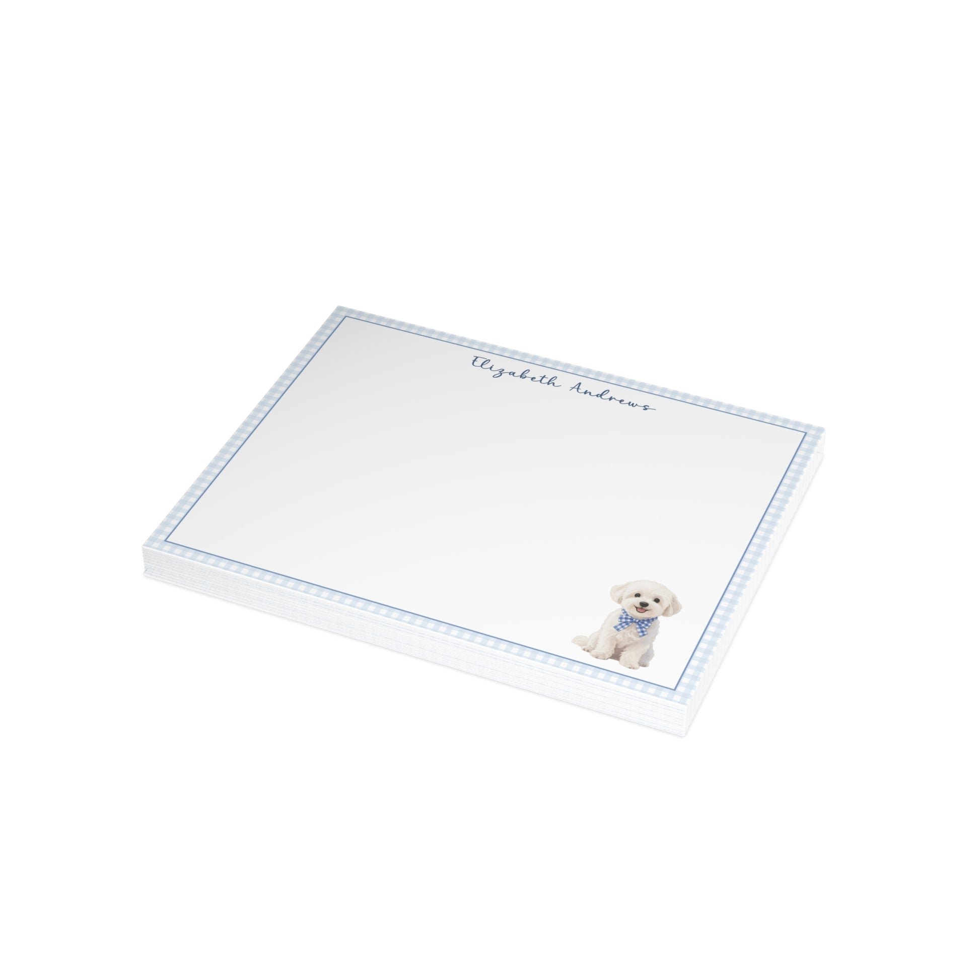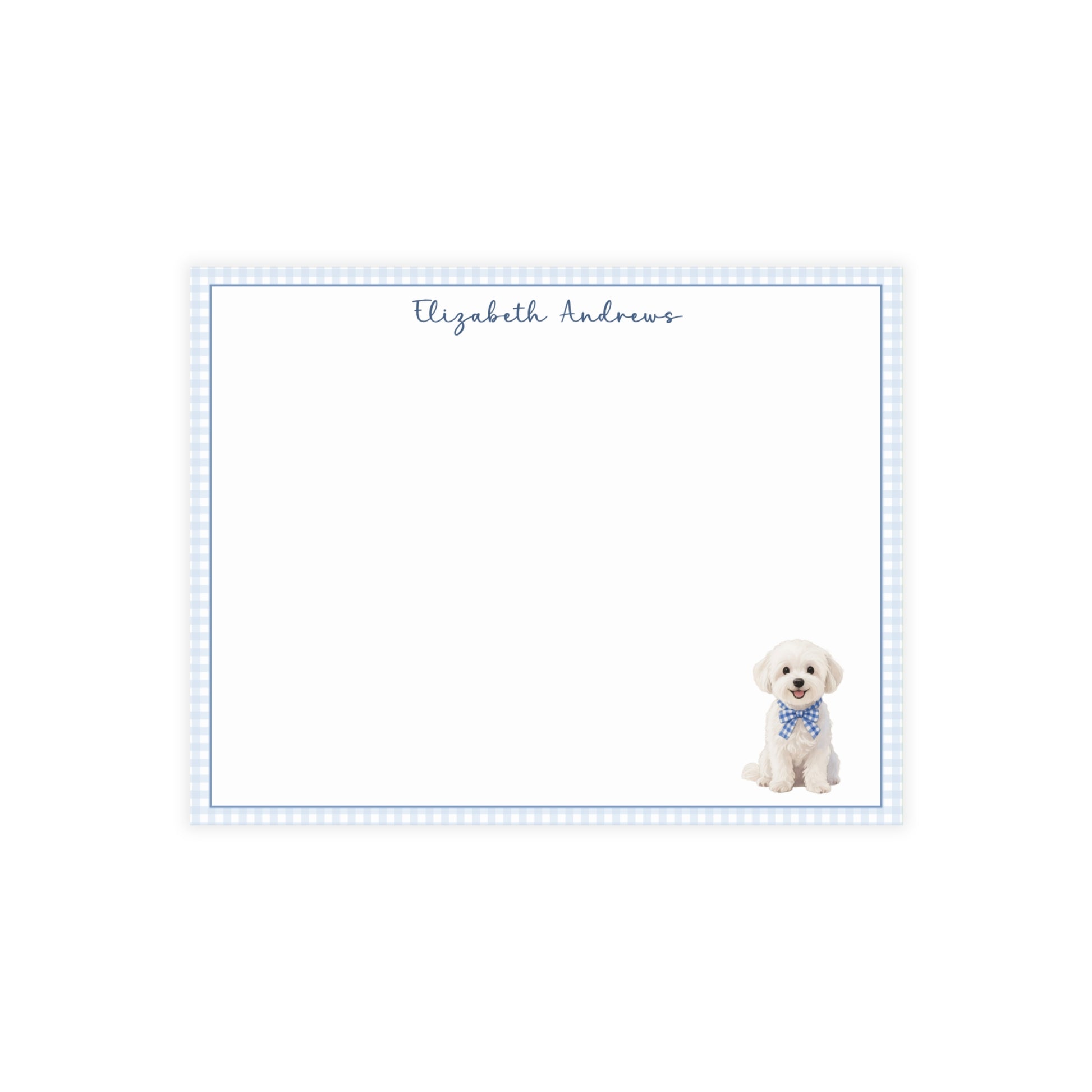 Maltese Dog Blue Gingham Personalized Notecard Set