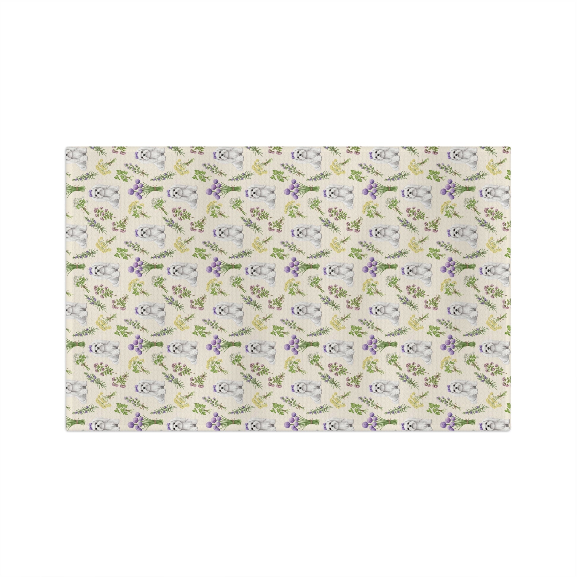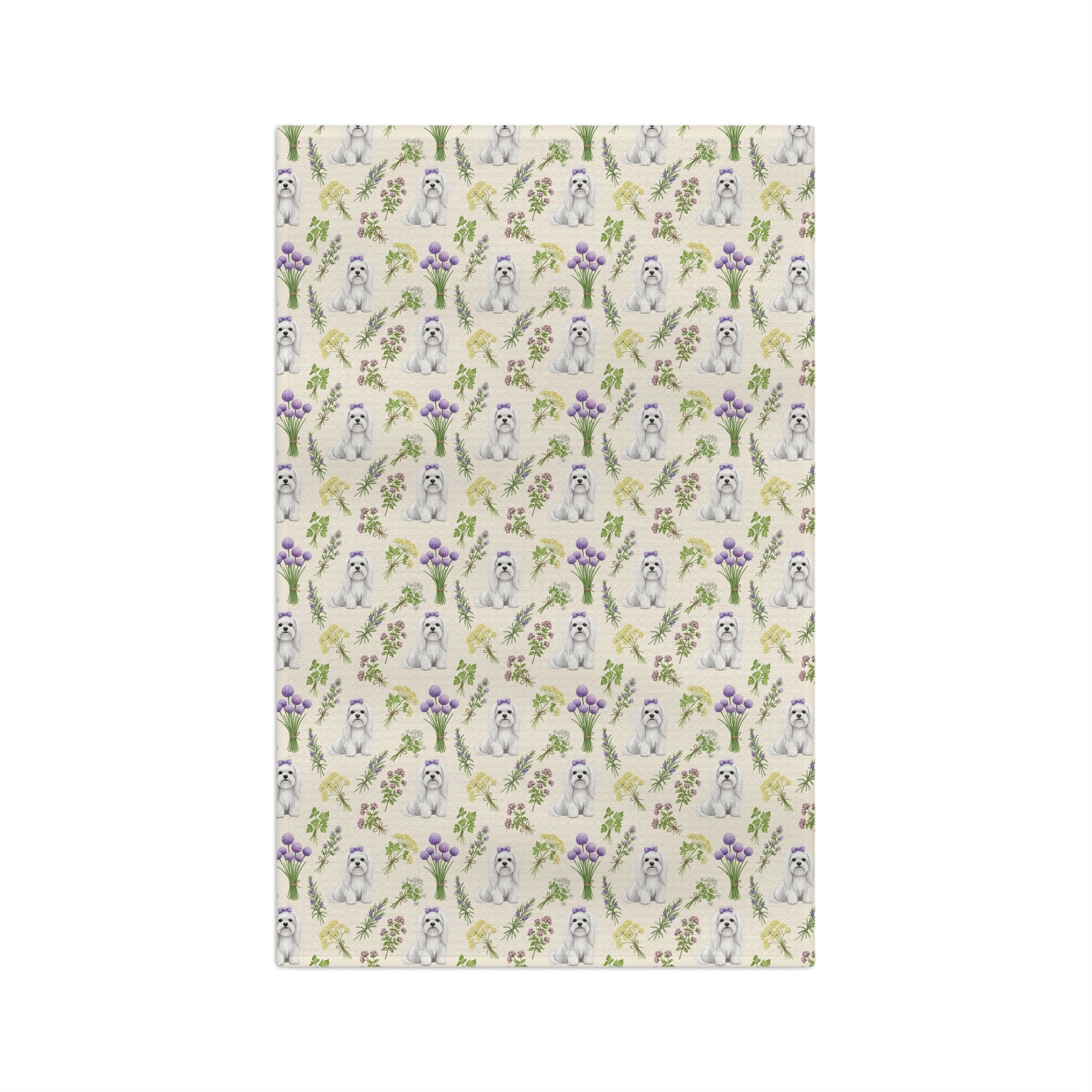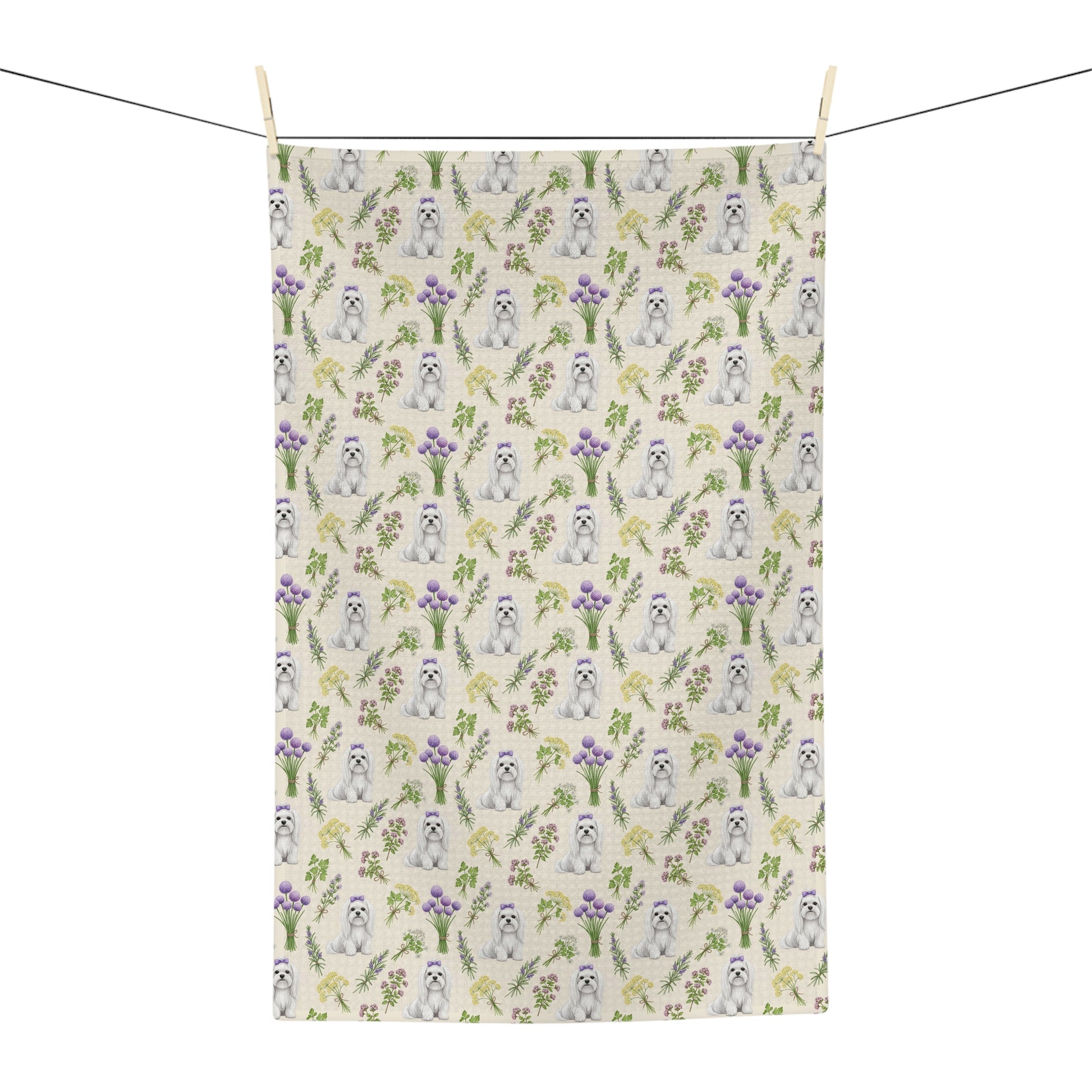 Maltese Dog & Herbs Tea Towel - Floral Dog Kitchen Towel