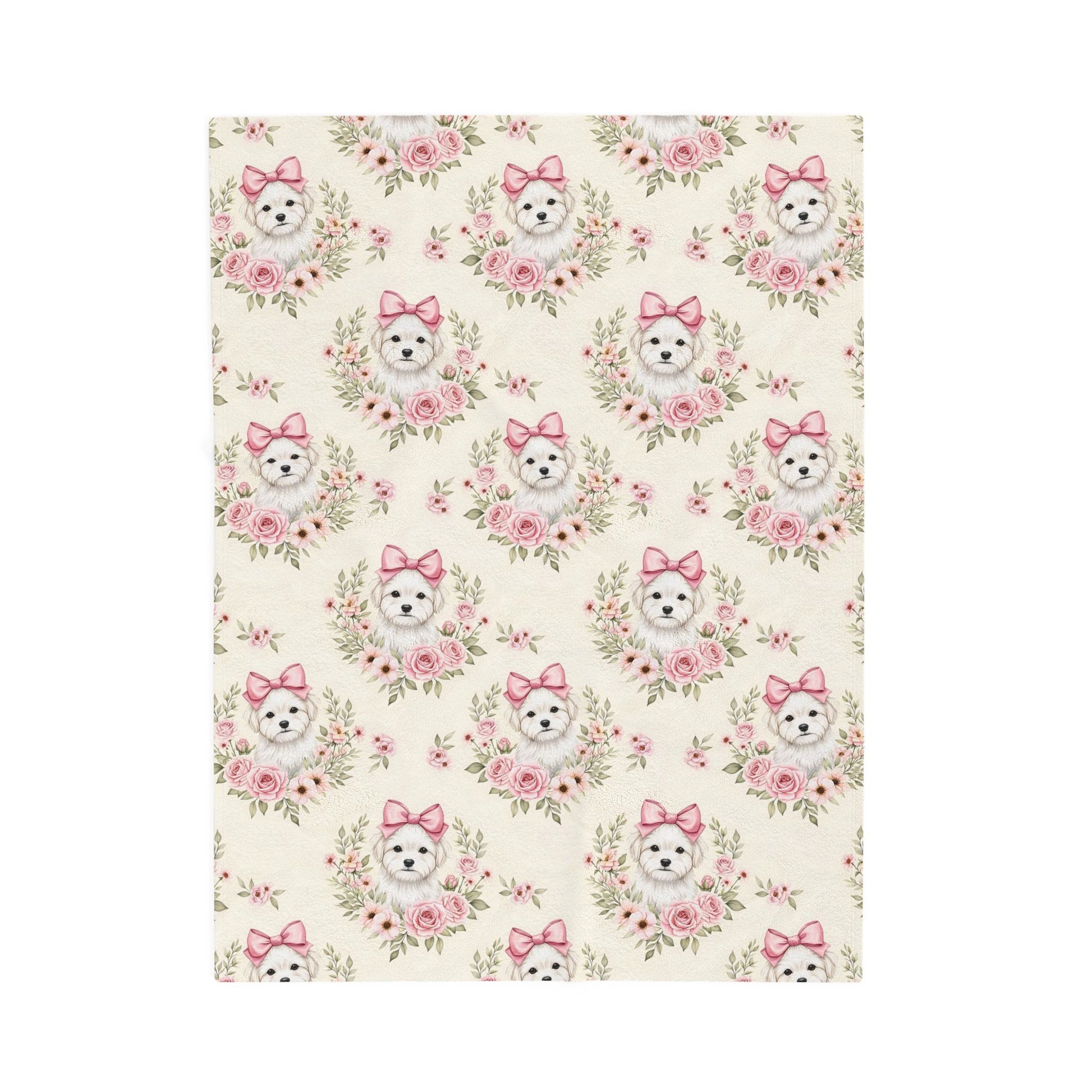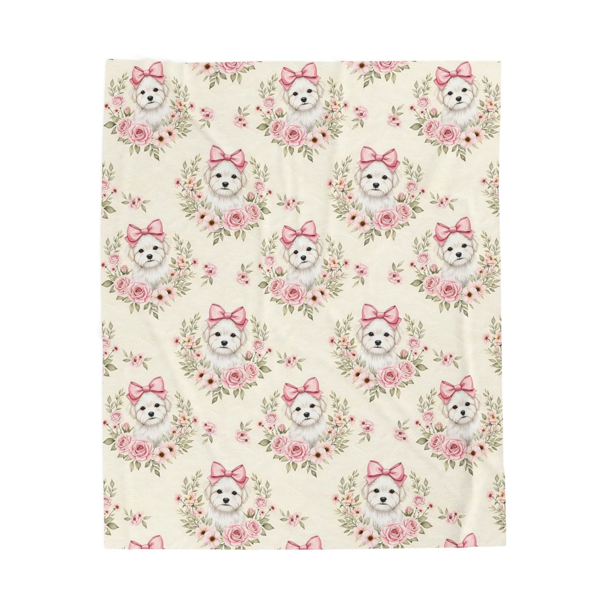 Maltese Pink Baby Blanket, Maltese Dog Baby Shower Baby Girl Newborn Gift Hospital Announcement Blanket Coming Home