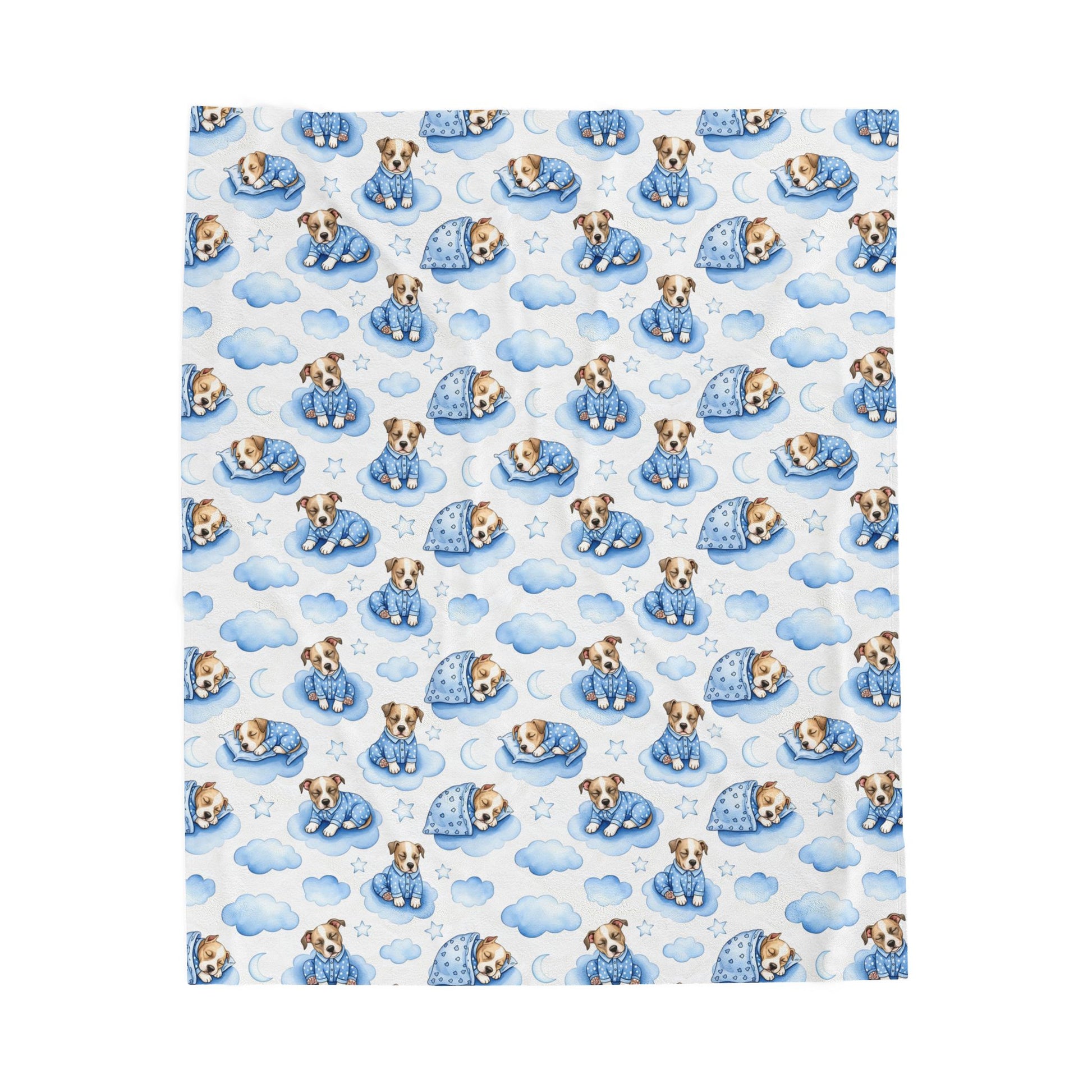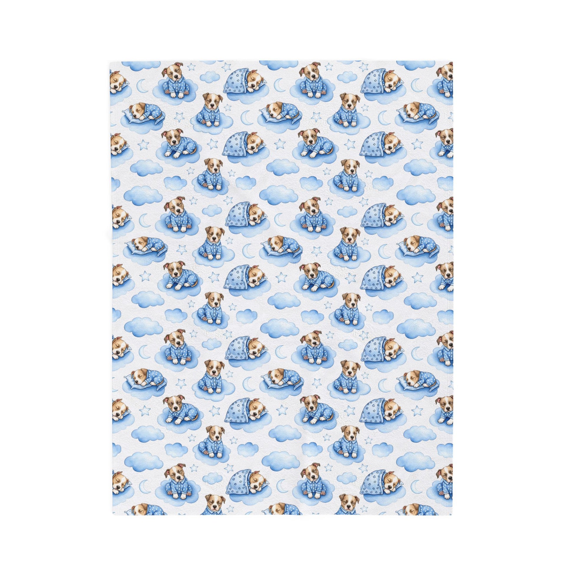 Wrap your little one in snuggly comfort with this adorable baby blanket featuring sweet puppies snoozing on clouds in dreamy blue pajamas. Perfect for nurseries, baby showers, or thoughtful gifts for new parents, this blanket combines charm and quality to create a keepsake they’ll treasure.