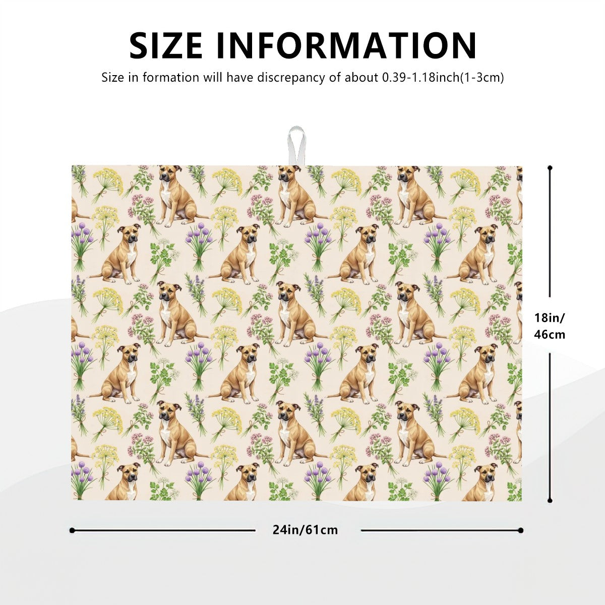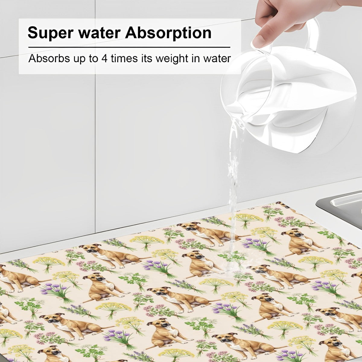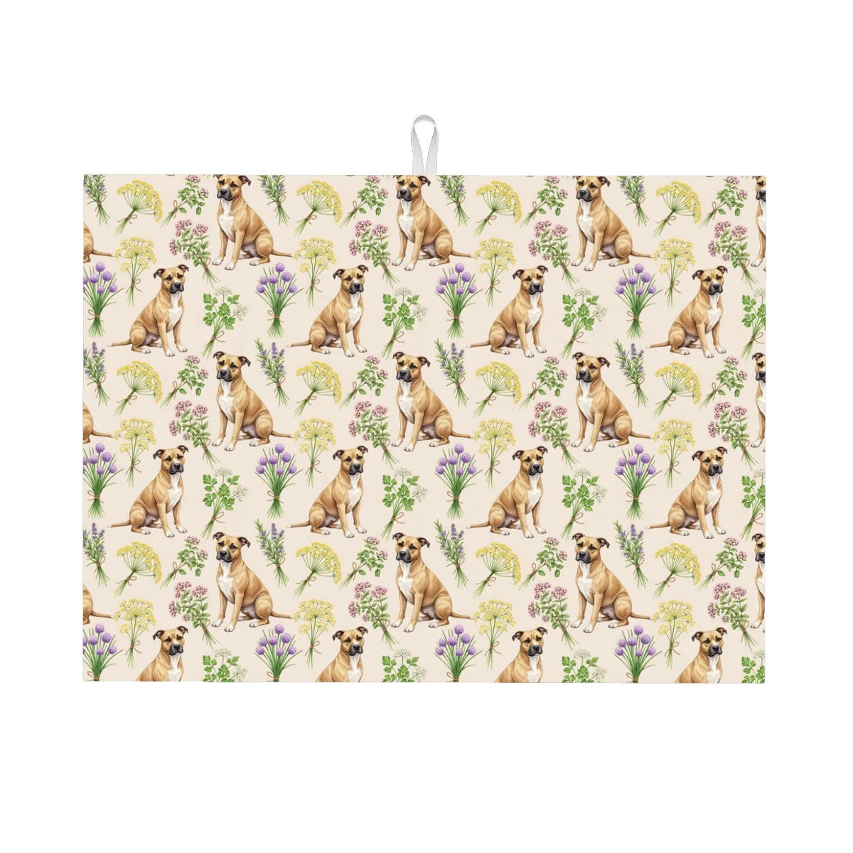 Brighten up your kitchen with this charming Dog-themed dish drying mat! Featuring a playful dog pattern and blooming herbs on a cozy neutral background, this mat is as functional as it is cute.
