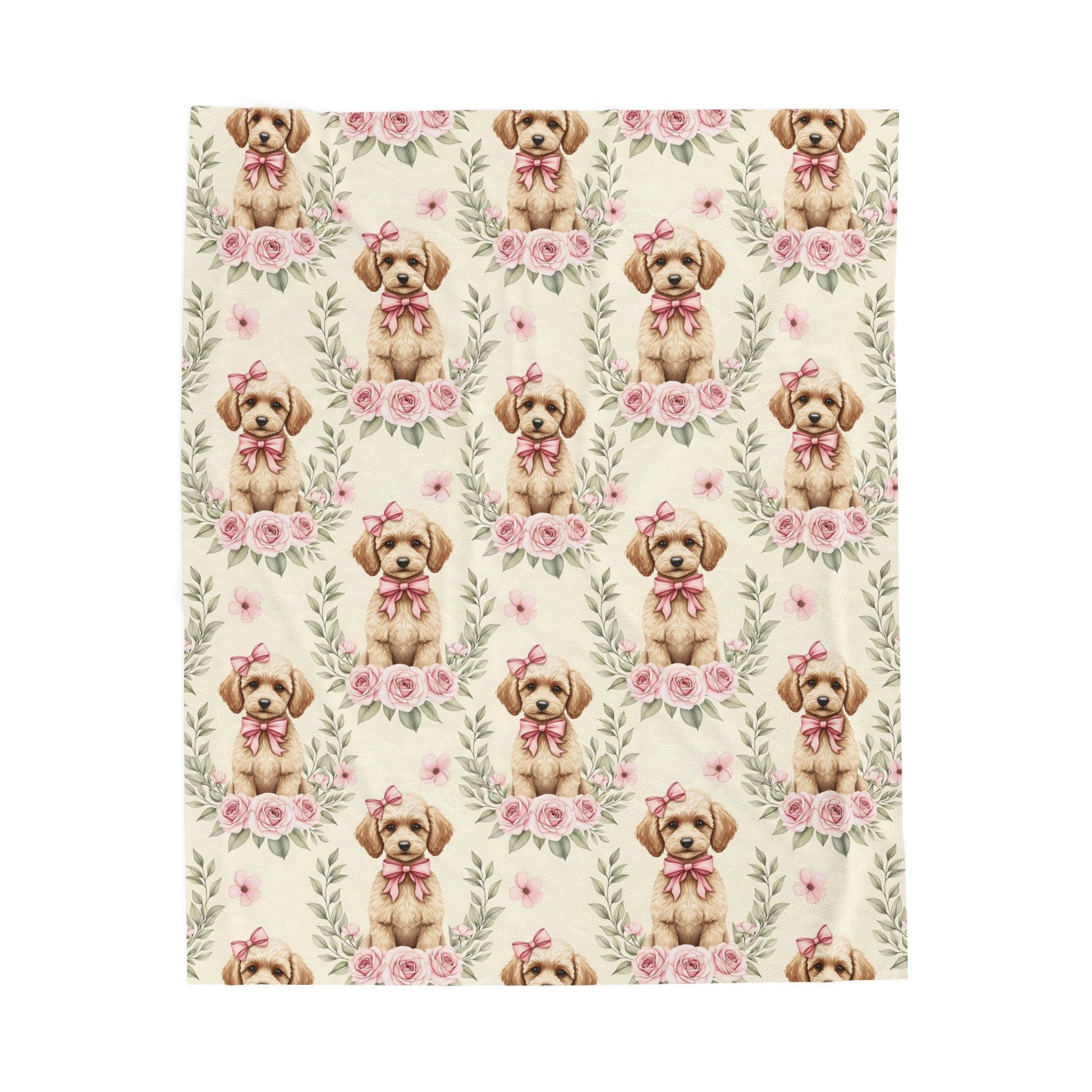 Wrap your little one in cozy comfort and cuteness with this adorable puppy-themed baby blanket! Featuring a sweet watercolor-style puppy with a pink bow surrounded by blush roses and soft greenery, this blanket adds the perfect touch of charm to any nursery décor. Ideal for cribs, strollers, or tummy time, it’s designed to be as durable as it is darling.