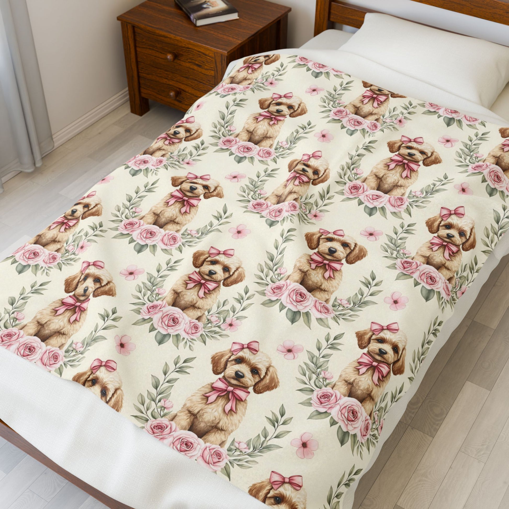 Baby Puppy Floral Blanket – Soft & Adorable Nursery Blanket for Girls