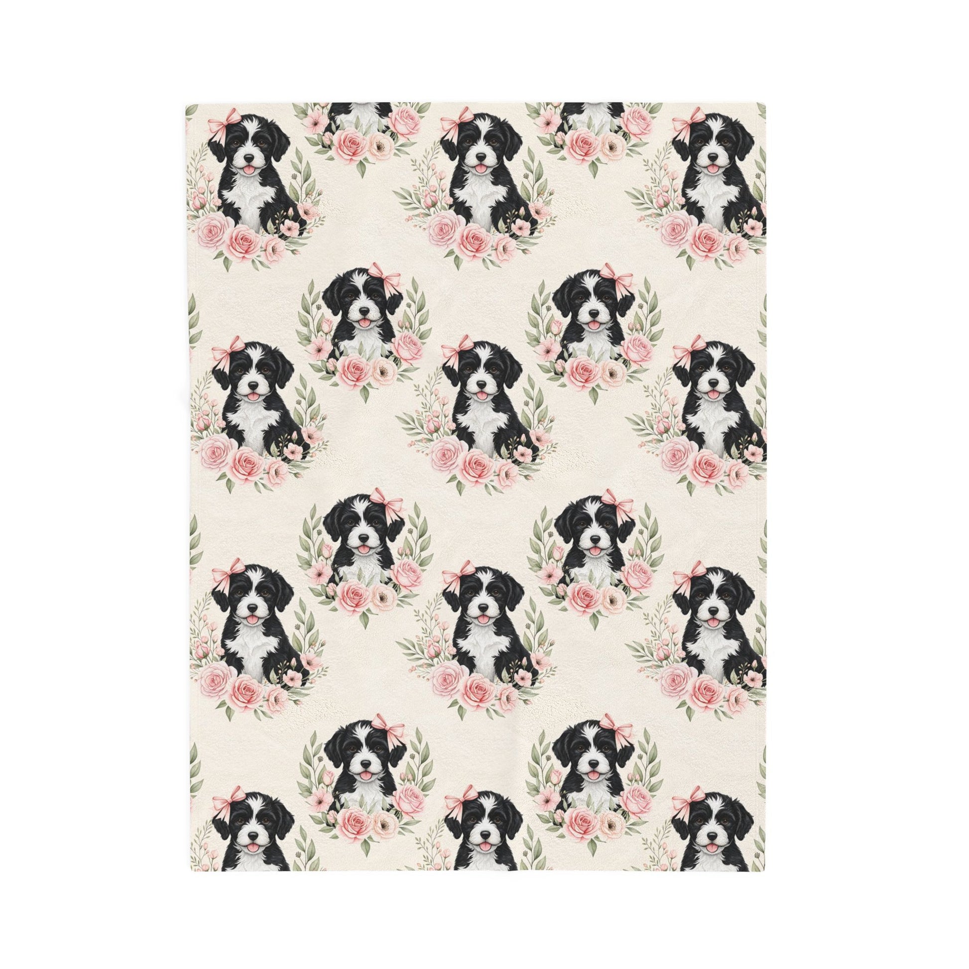 Baby Puppy Floral Blanket – Soft & Adorable Nursery Blanket for Girls