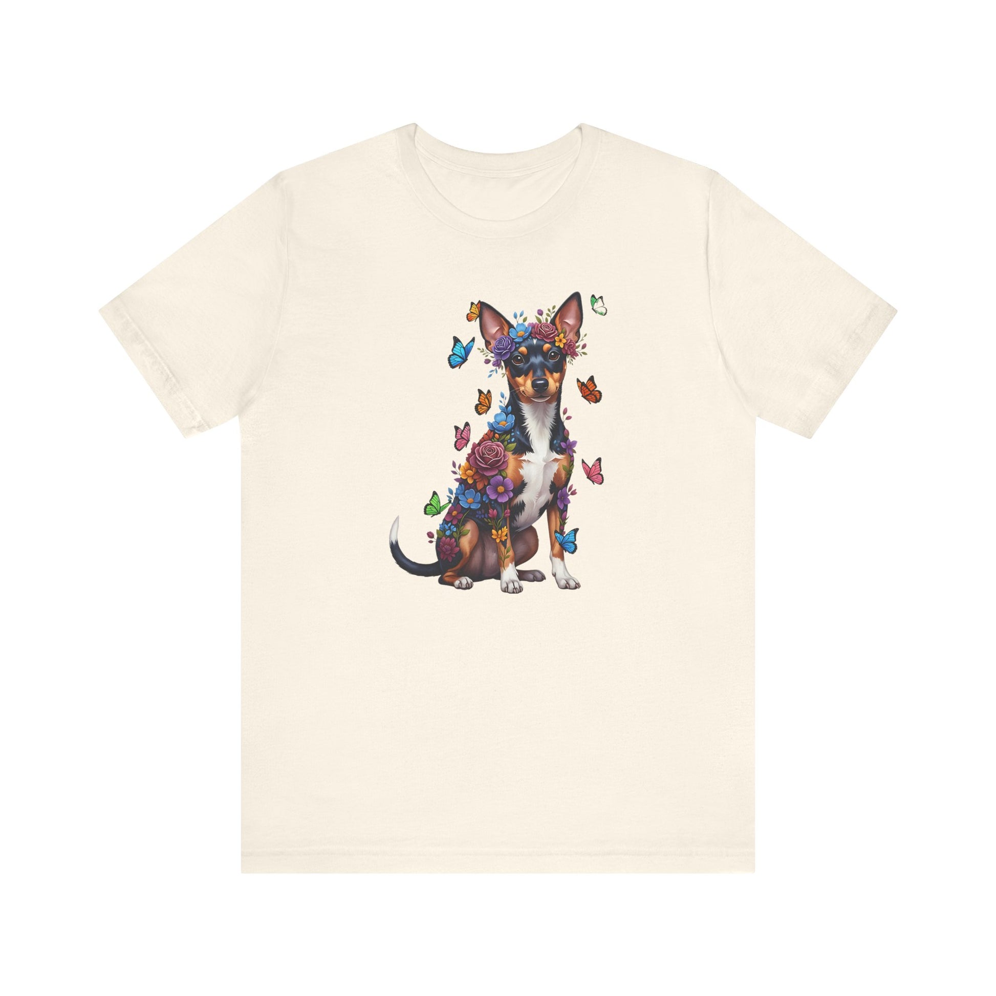 Whimsical Floral Rat Terrier Tee – Colorful Dog Lover Shirt with Butterflies