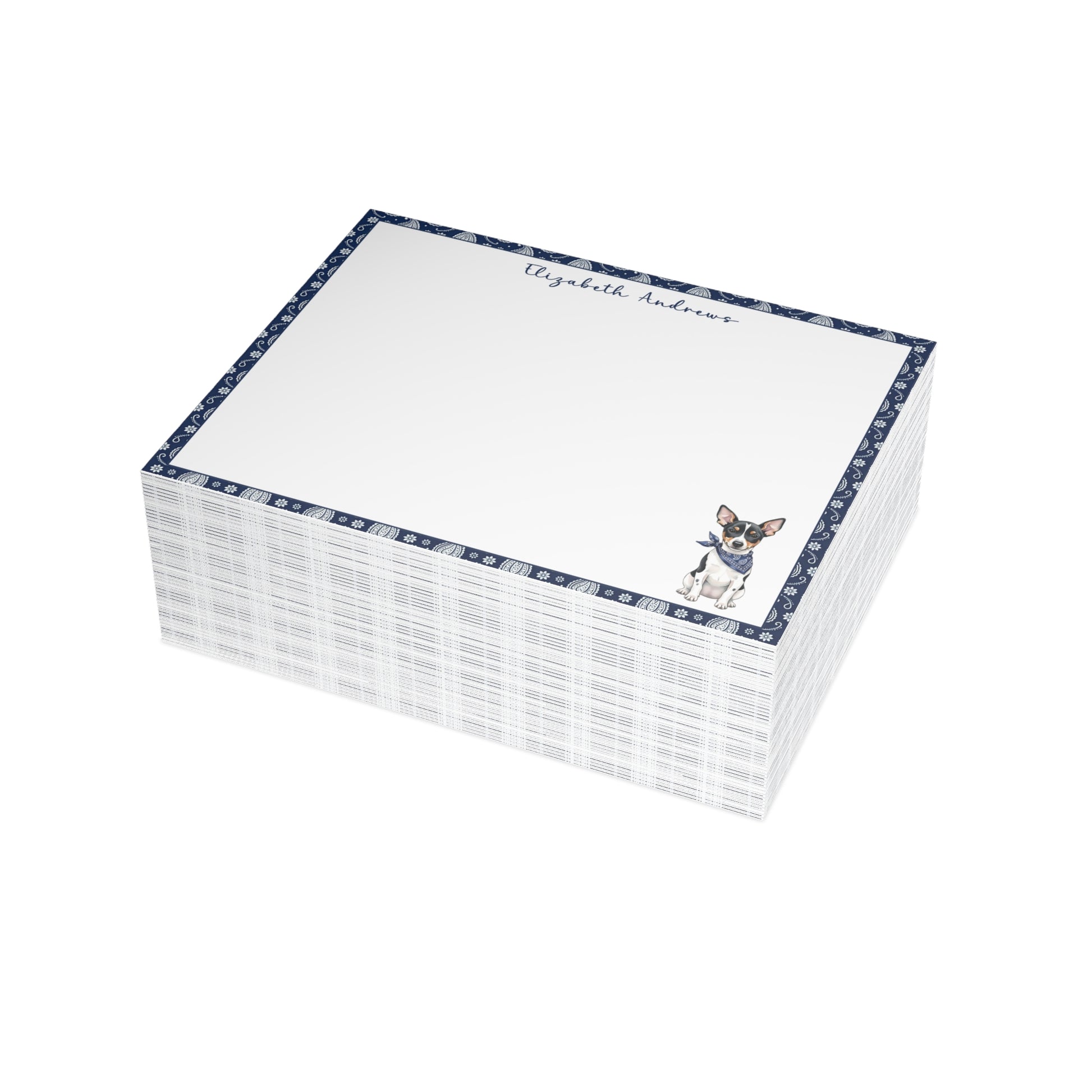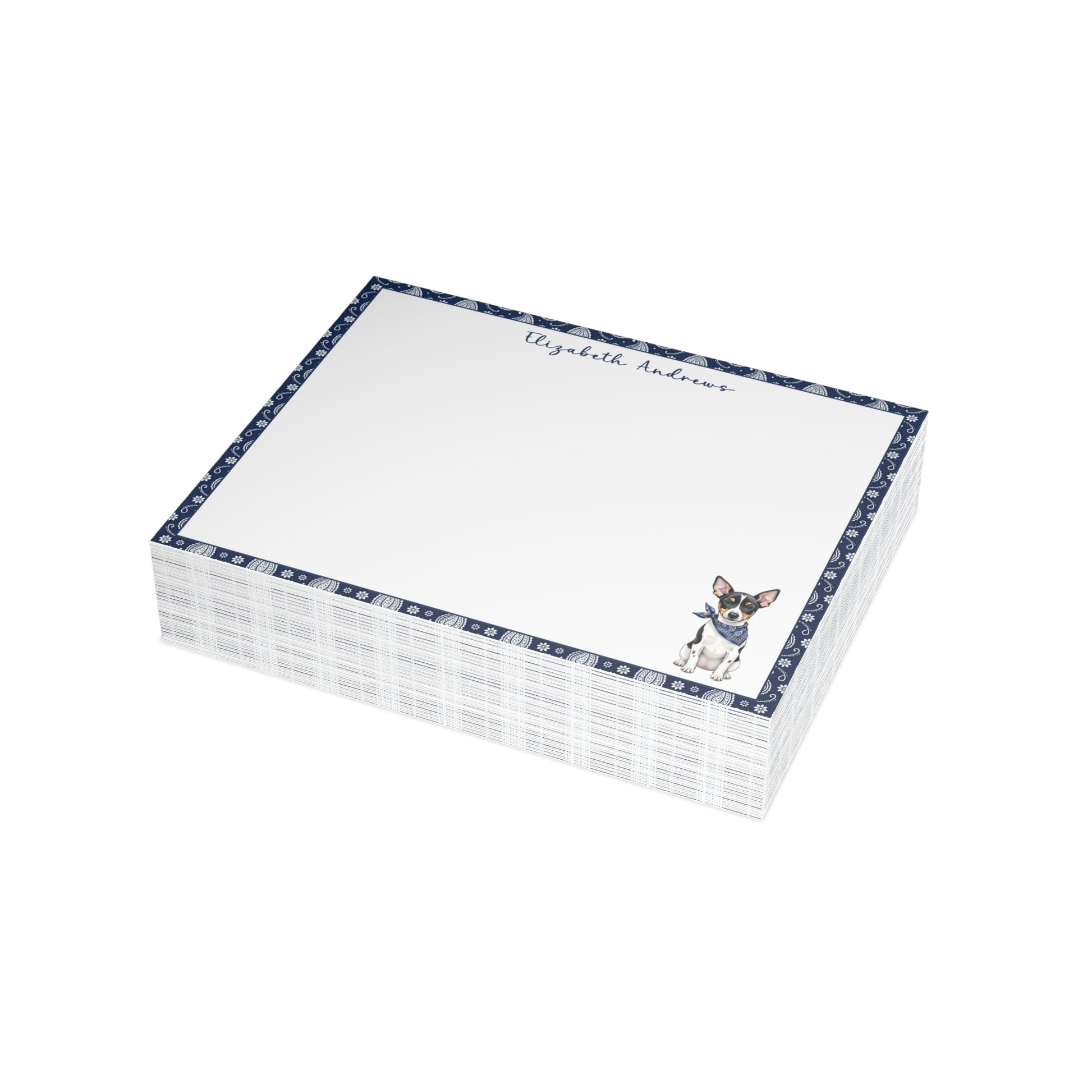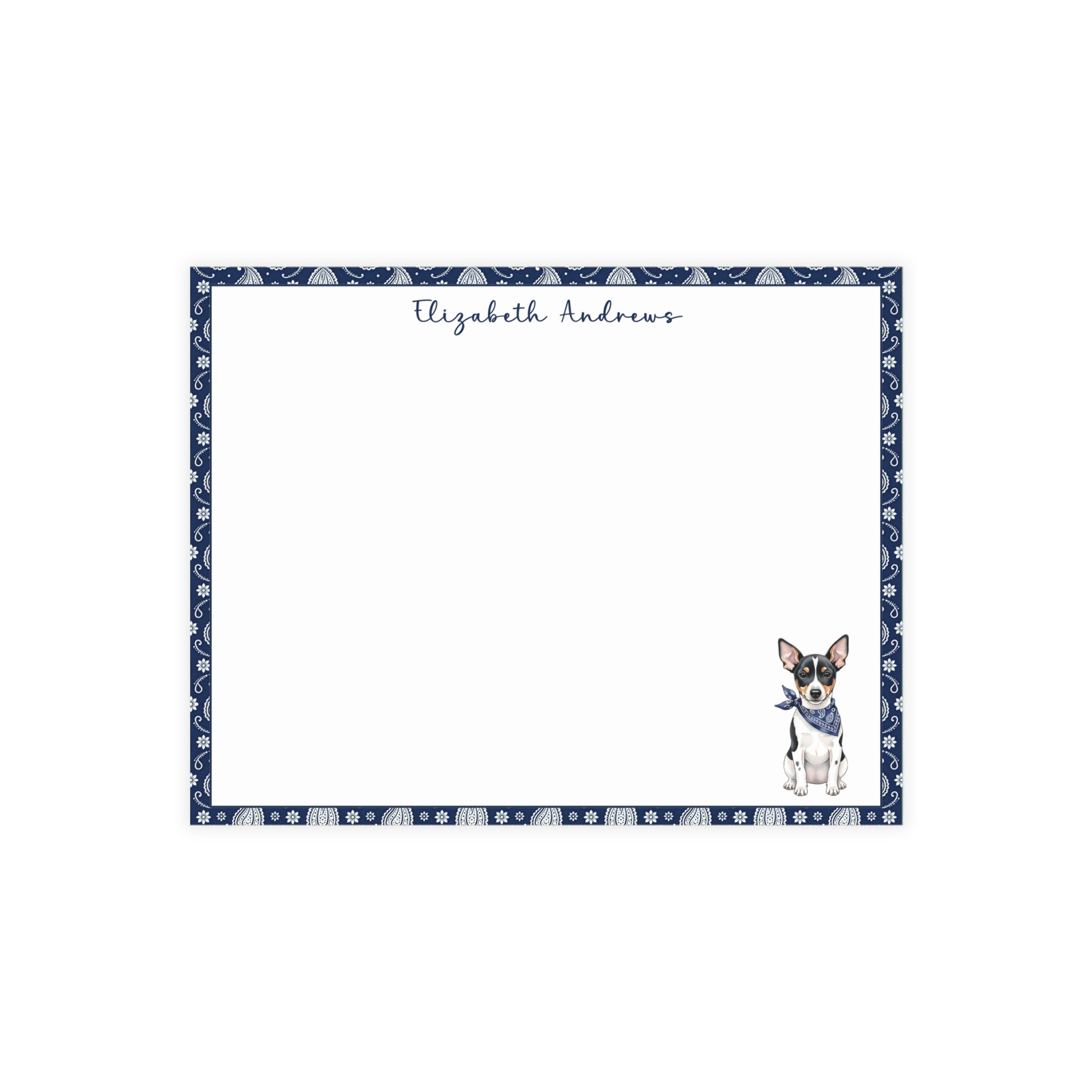 Add a personal, charming touch to your correspondence with this adorable notecard set — perfect for dog lovers and stationery enthusiasts alike. Each flat notecard features a classic navy blue paisley border and a sweet illustrated pup wearing a matching bandana, creating a timeless and cheerful design that’s ideal for thank-you notes, casual letters, or gift enclosures.