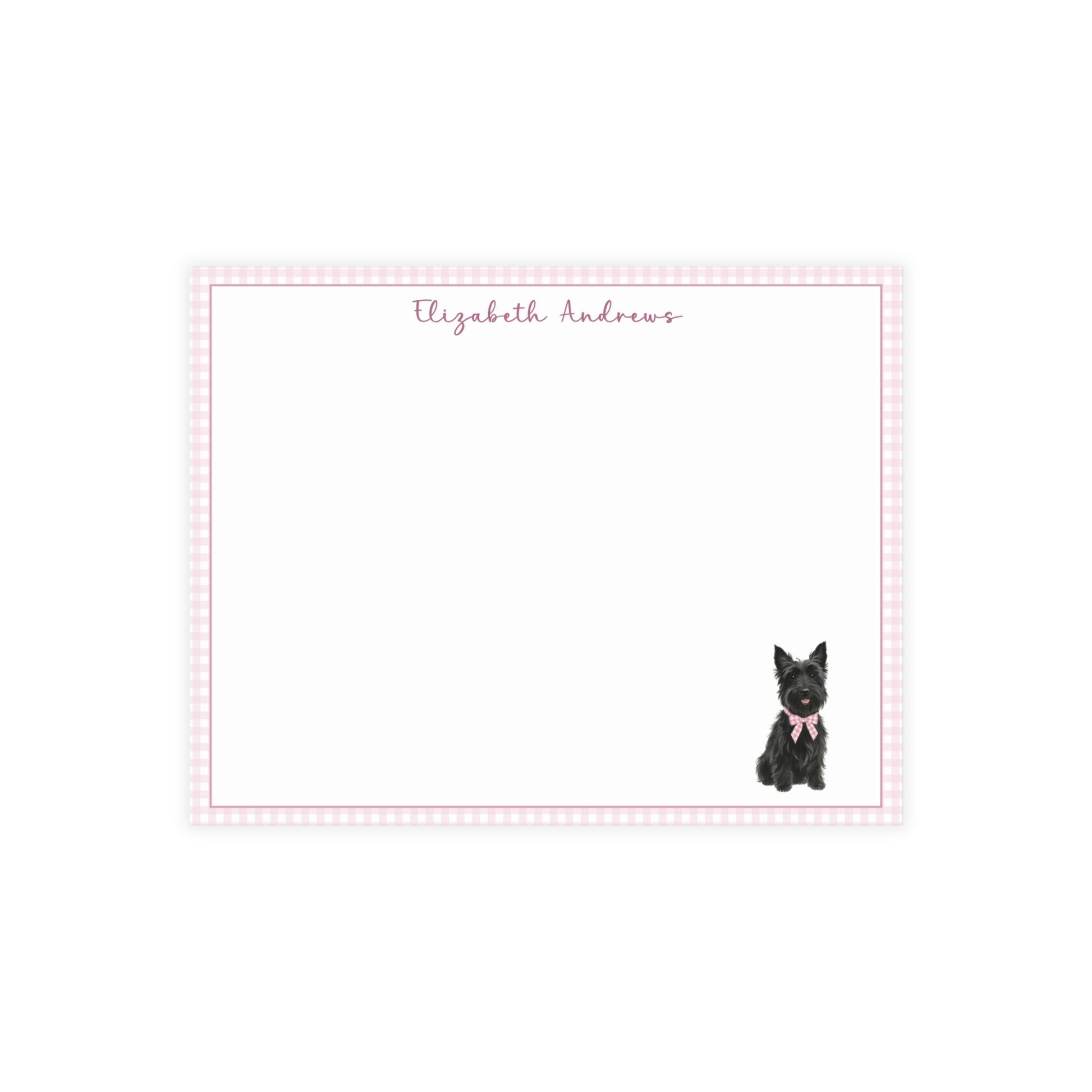 Scottish Terrier Dog Pink Gingham Personalized Notecard Set