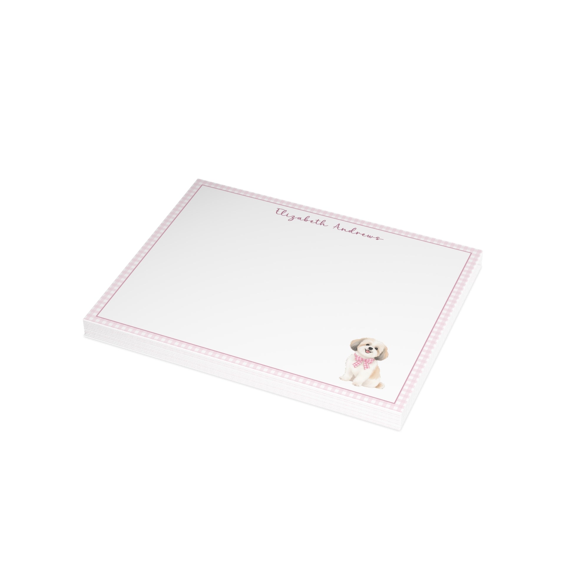 Shih Tzu Dog Pink Gingham Personalized Notecard Set