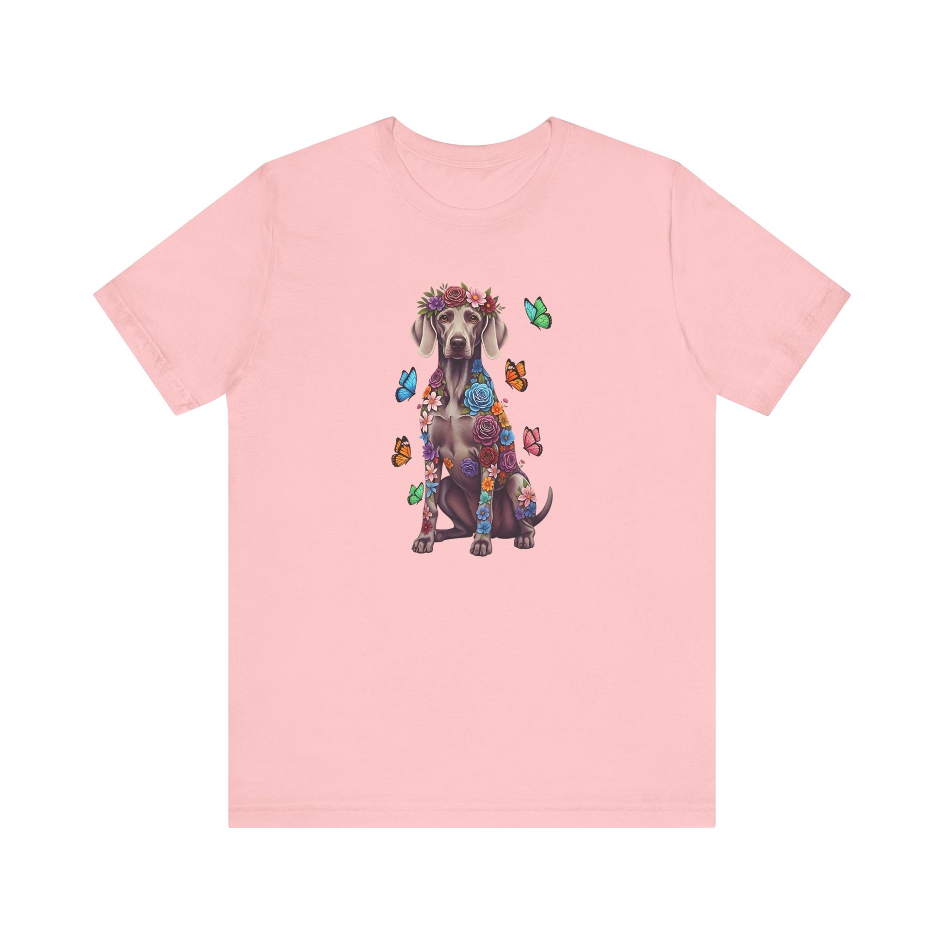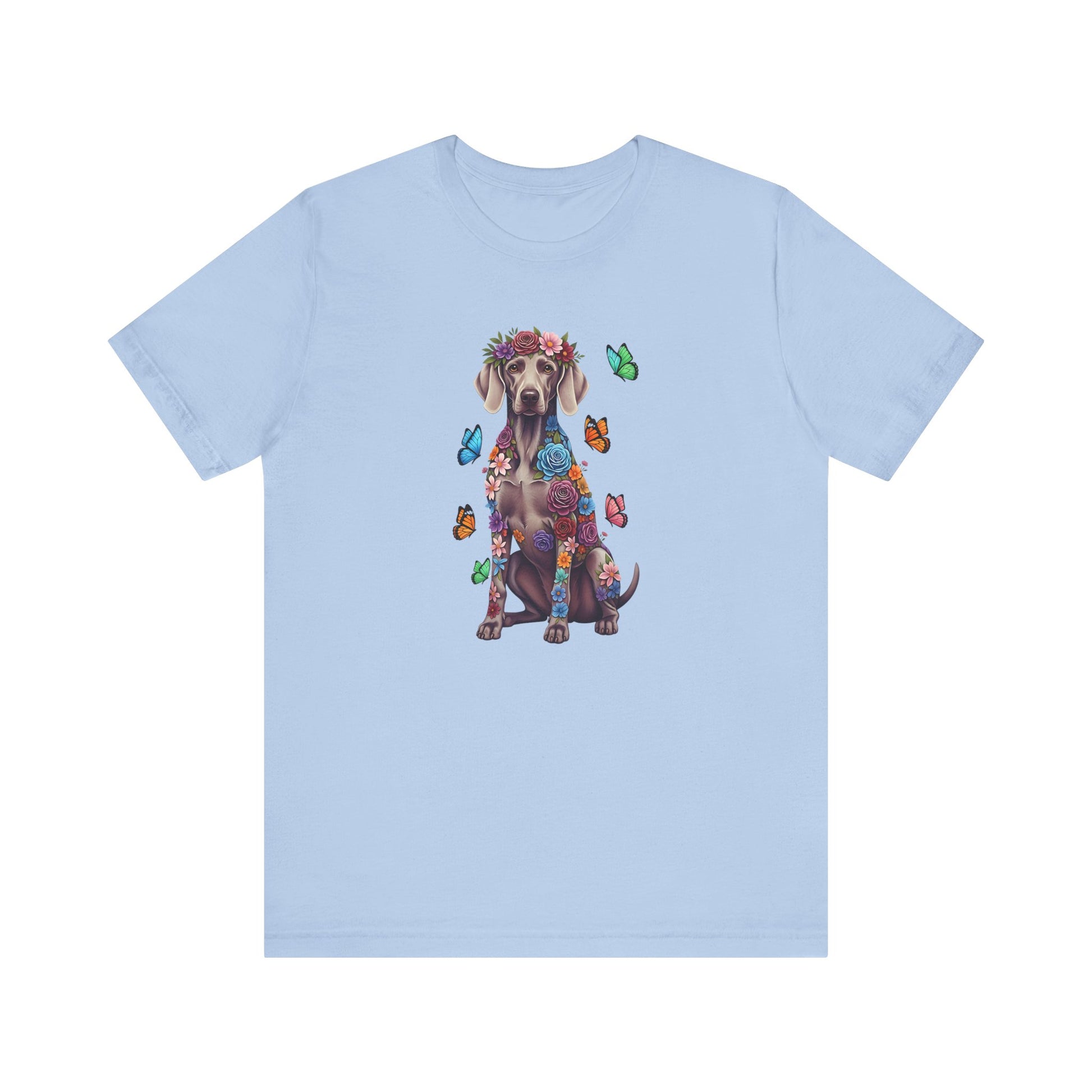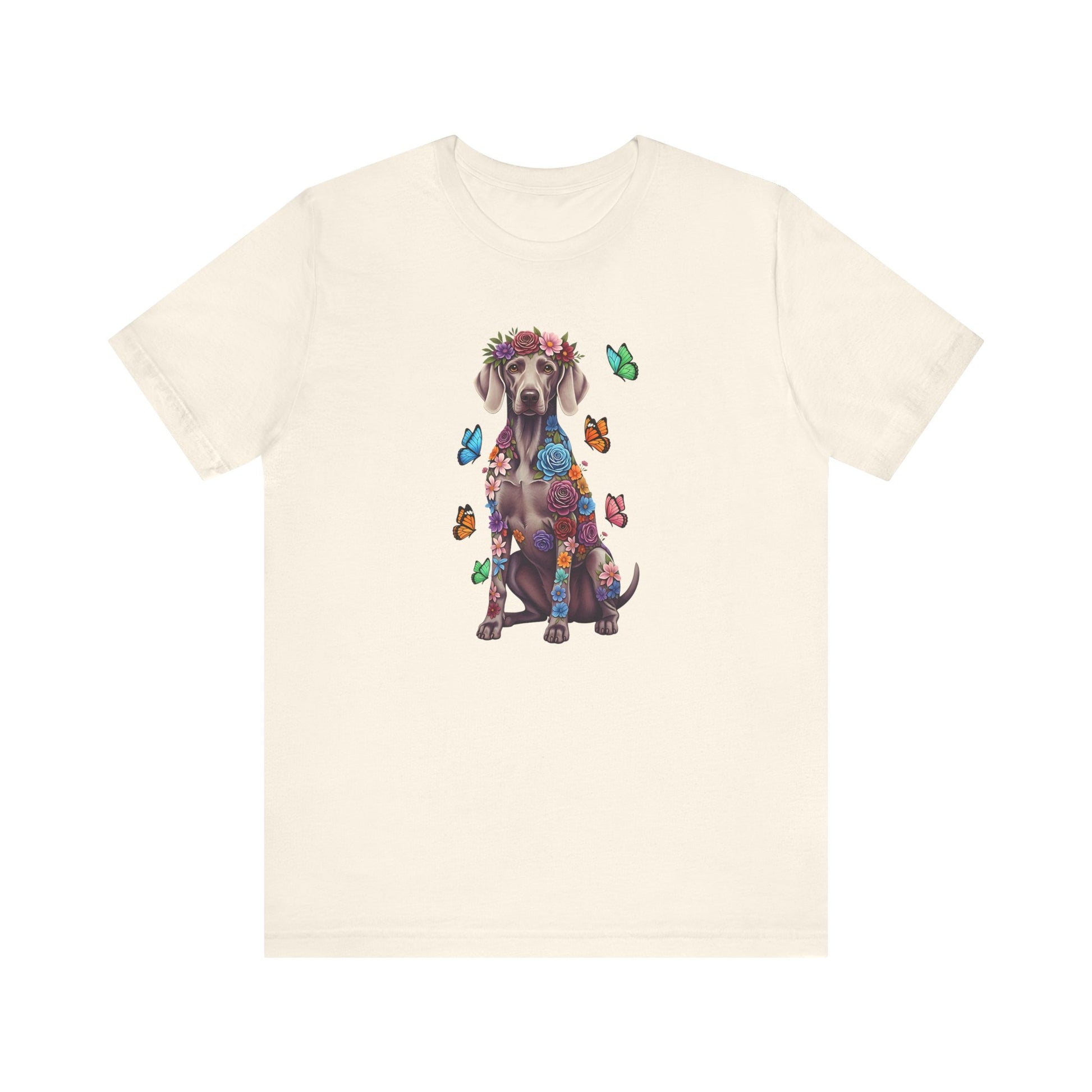 Whimsical Floral Weimaraner Tee – Colorful Dog Lover Shirt with Butterflies