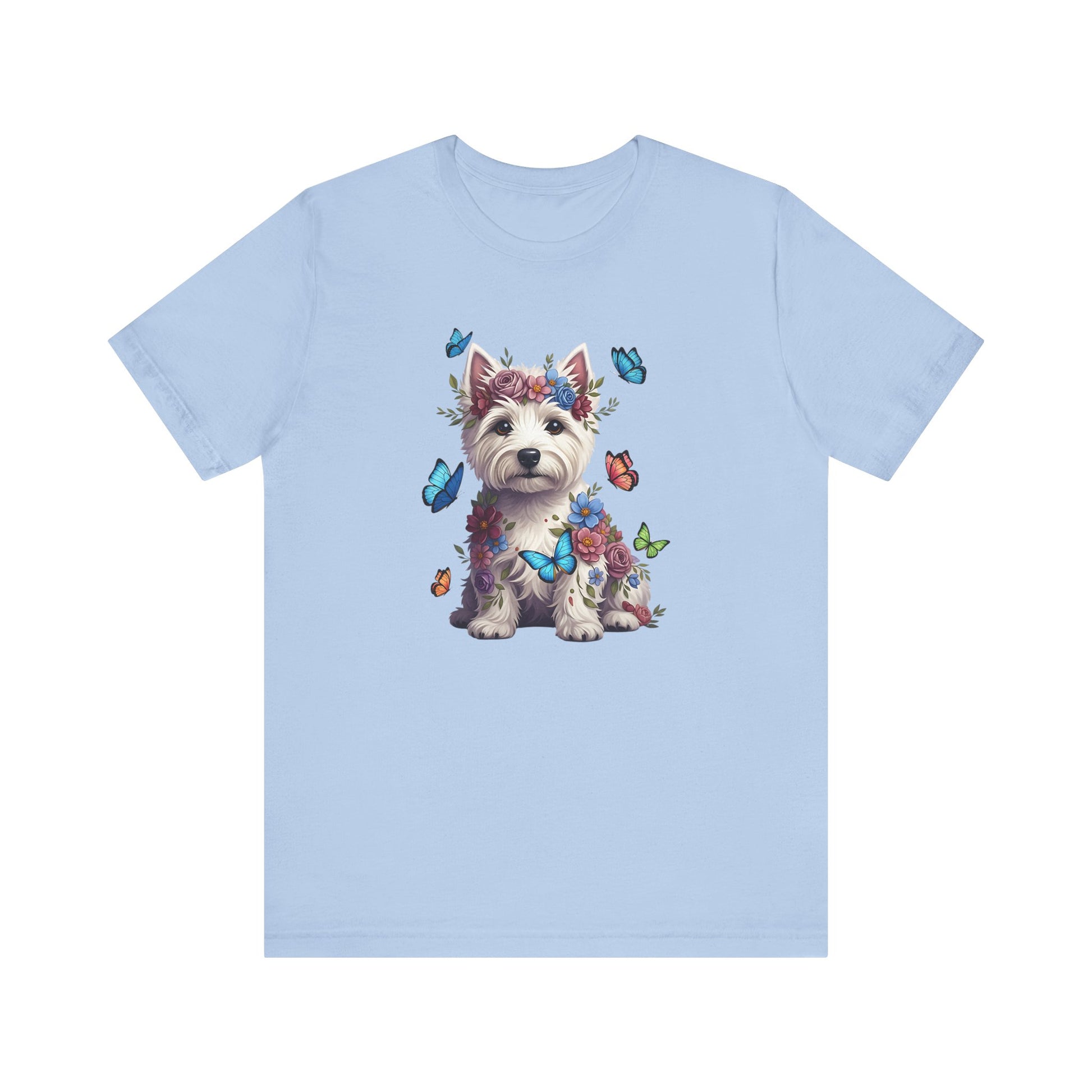 Whimsical Floral West Highland White Terrier Tee – Colorful Dog Lover Shirt with Butterflies