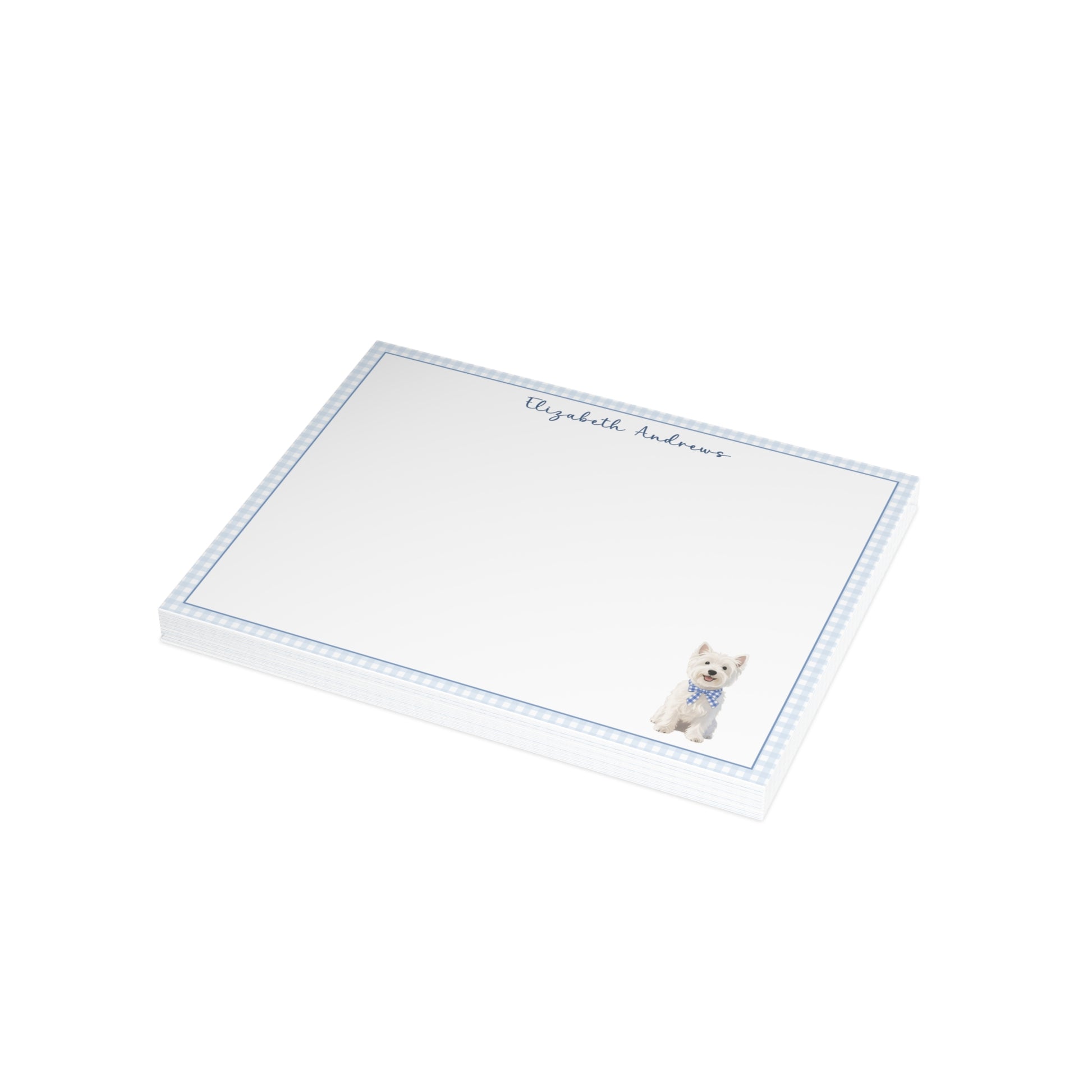 West Highland White Terrier Dog Blue Gingham Personalized Notecard Set