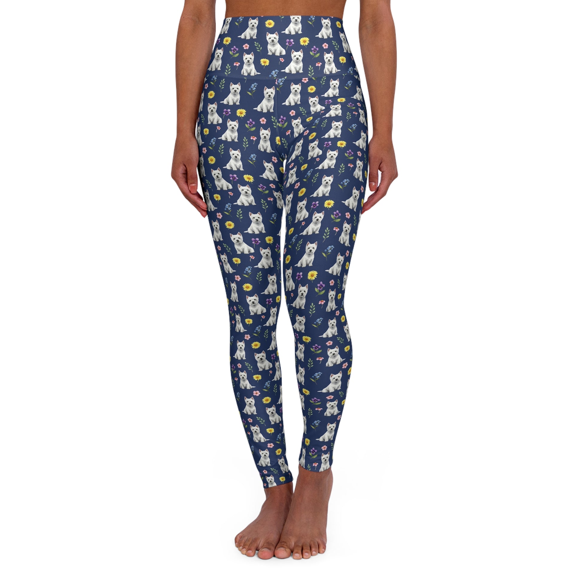 West Highland White Terrier Dog Floral High Waisted Yoga Leggings - Perfect for Fitness & Everyday Wear