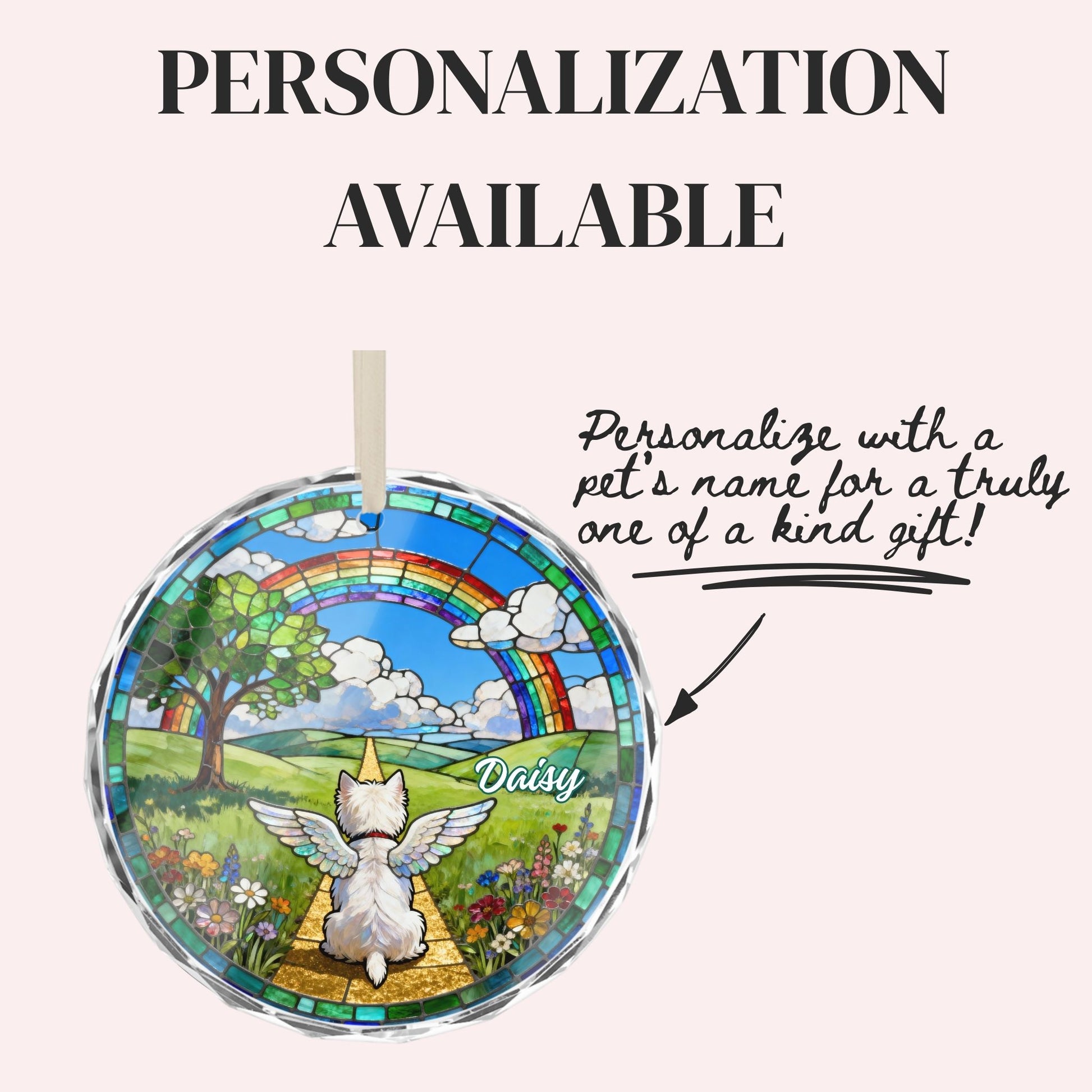 Rainbow Bridge Stained Glass Style Christmas Ornament – Personalized Memorial Gift for Pet Loss