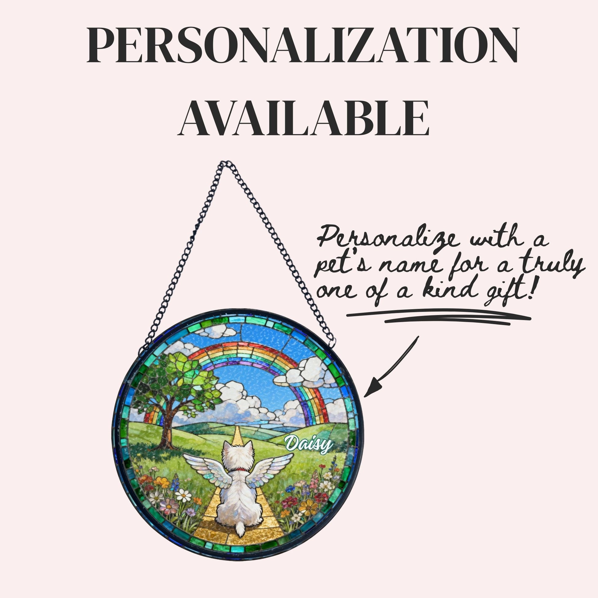 Rainbow Bridge Stained Glass Dog Suncatcher – Personalized Memorial Gift for Pet Loss