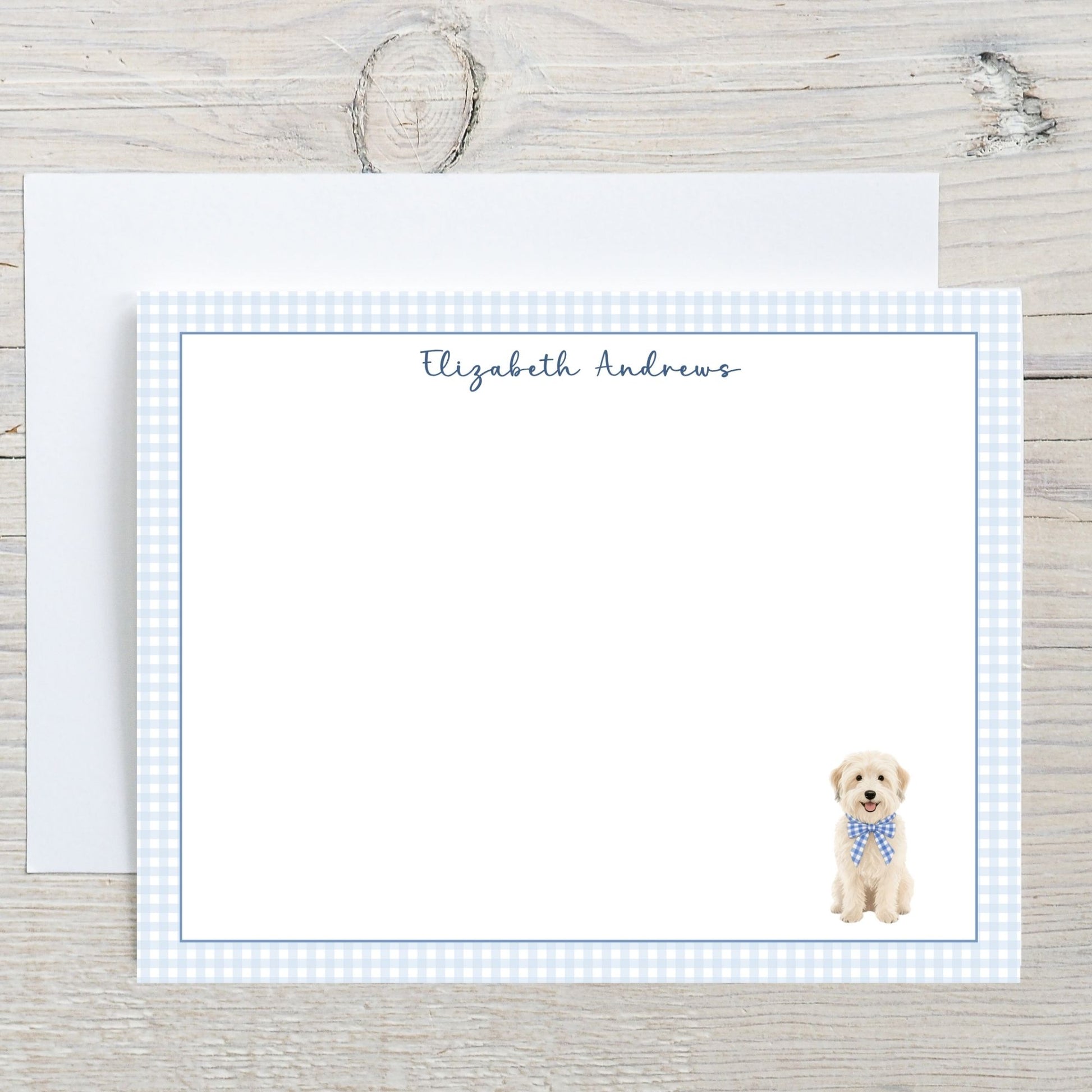 Wheaten Terrier Dog Blue Gingham Personalized Notecard Set