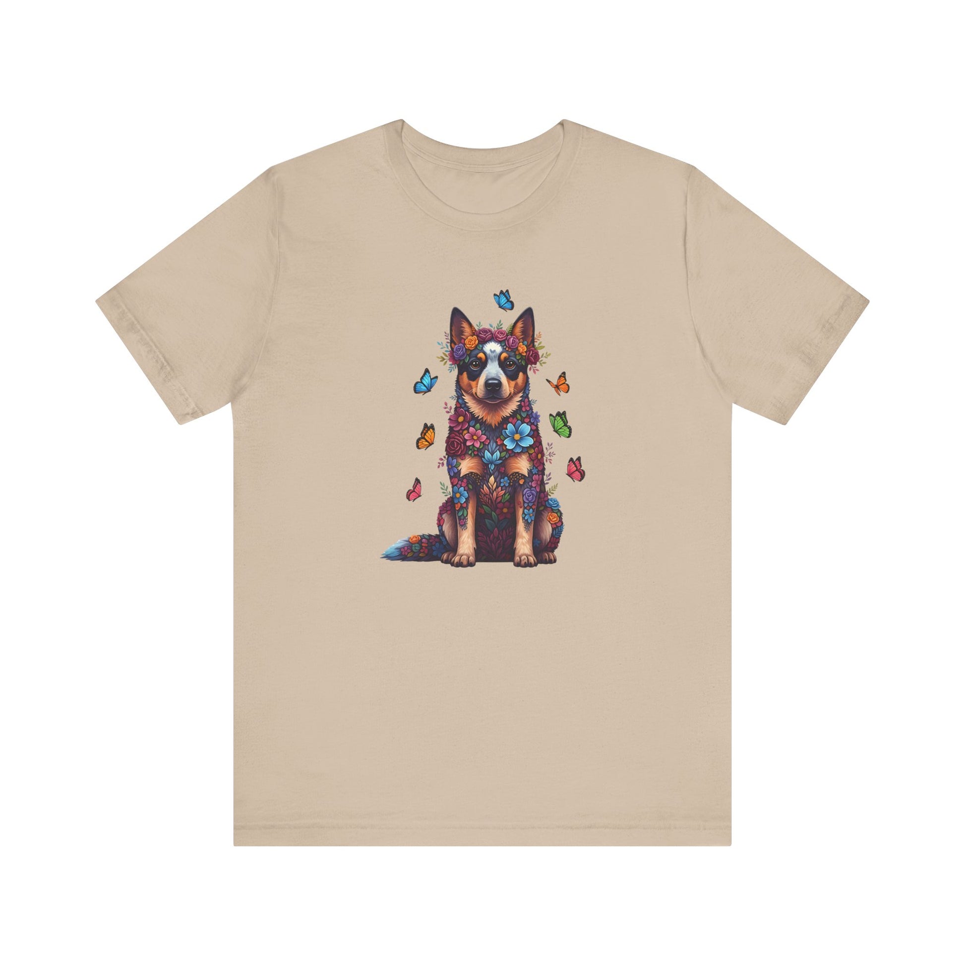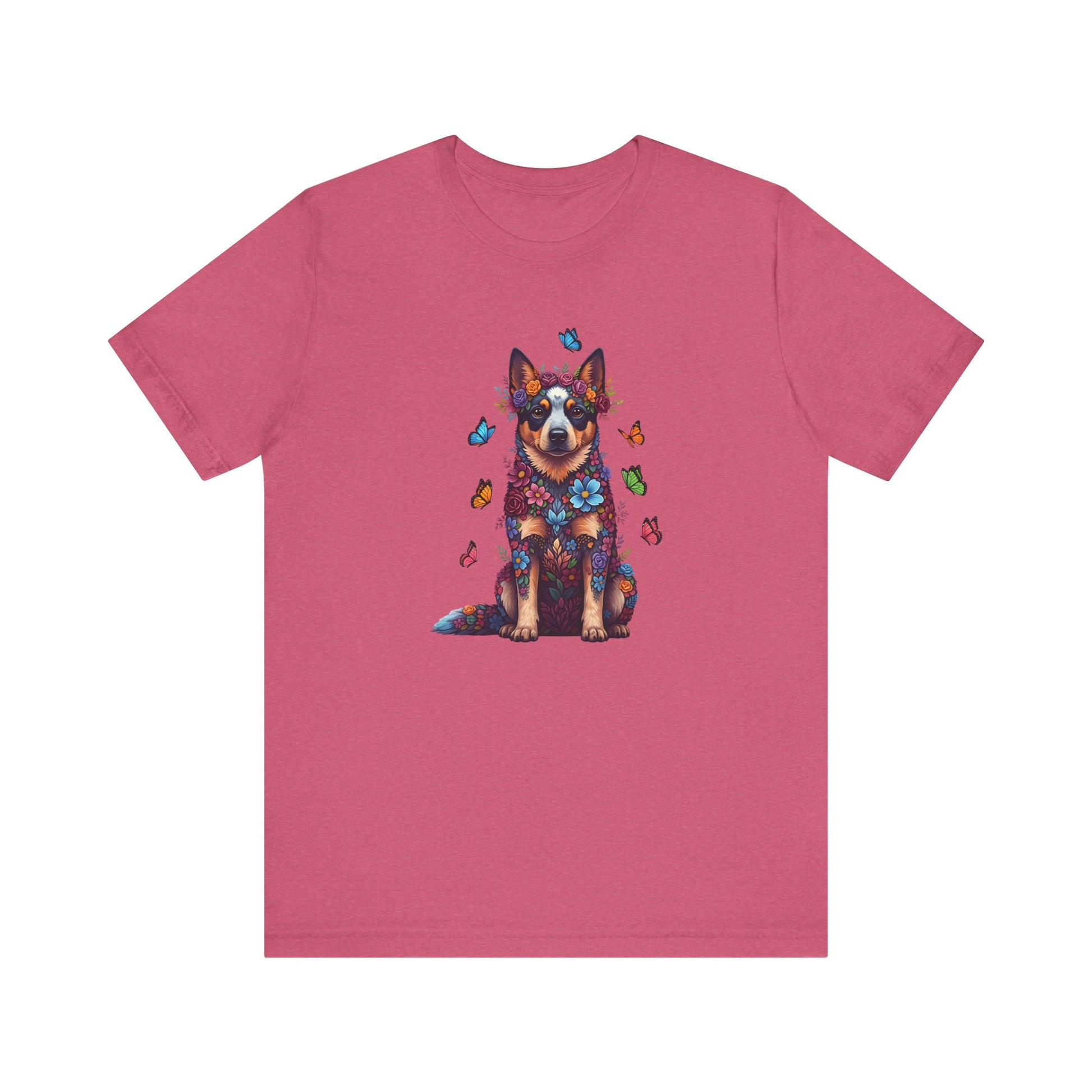 Whimsical Floral Australian Cattle Dog Tee – Colorful Dog Lover Shirt with Butterflies