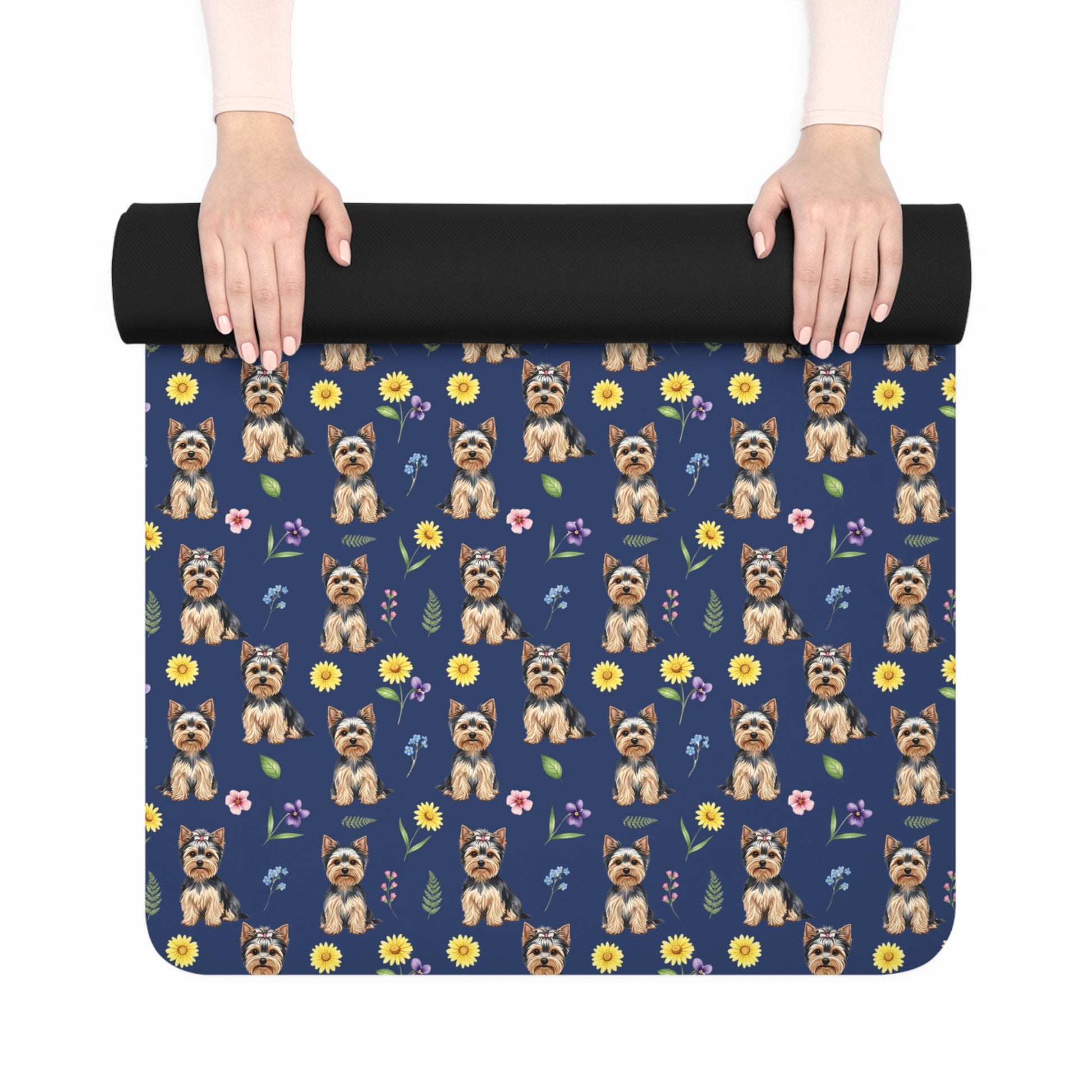 Yorkshire Terrier Dog Floral Yoga Mat – Durable Non-Slip Rubber Surface for Home & Studio Practice